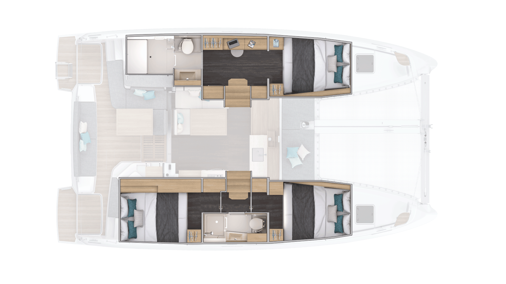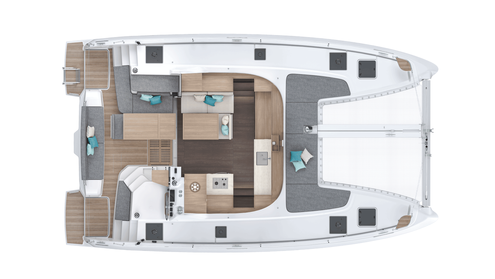 The layout is designed to simplify life on board. This catamaran offers freedom of movement, enabling you to take full advantage of each moment of the journey.